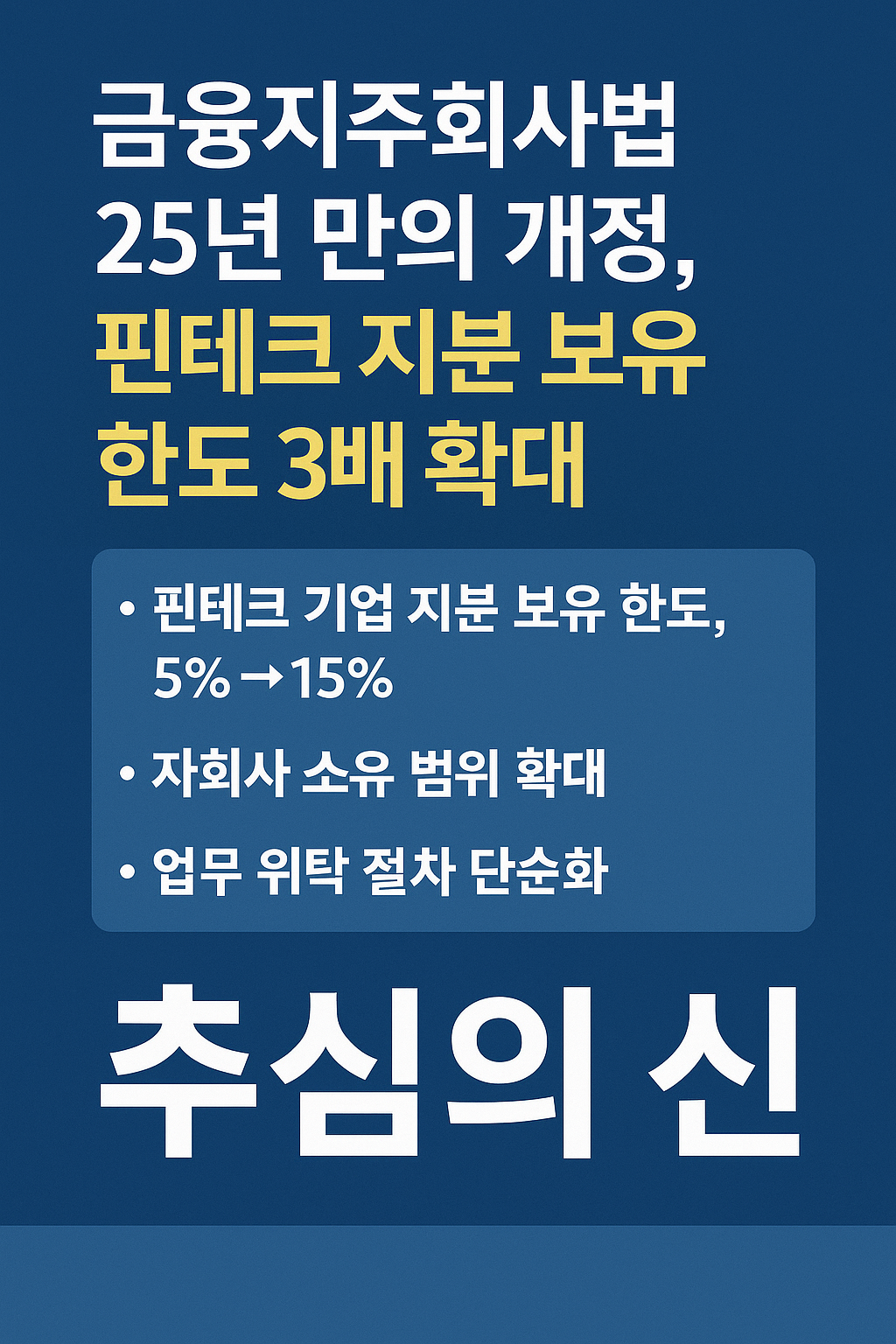 금융지주회사법 25년 만의 개정, 핀테크 지분 보유 한도 3배 확대 – 추심의 신